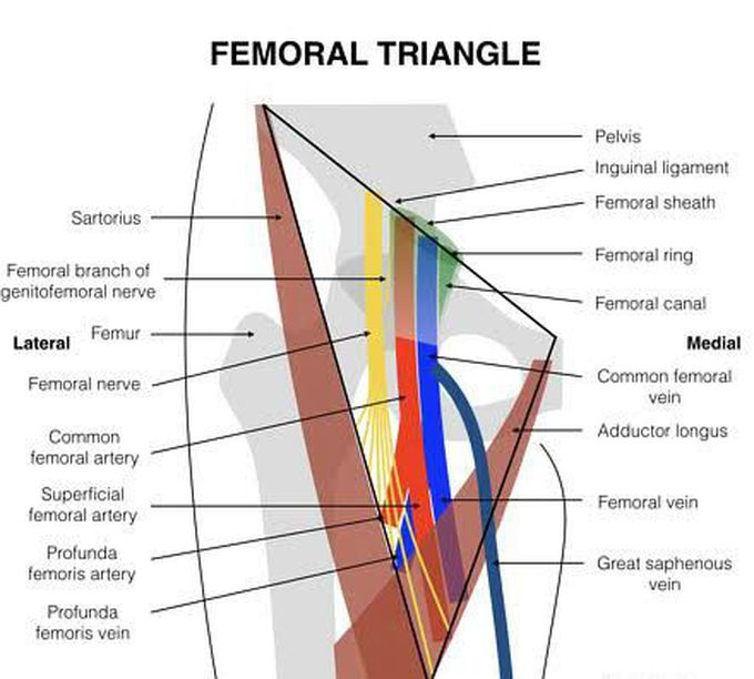 ■ triangular space bounded by the inguinal ligament, the exterior border of the rectus muscle and the inferior epigastric vessels.